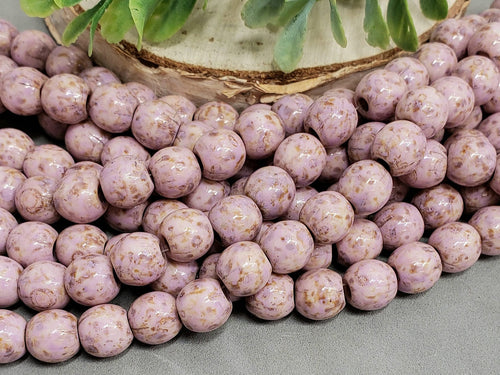 Lilac - Large Hole Picasso Czech Druks - 8mm - 6" Strand/20pcs