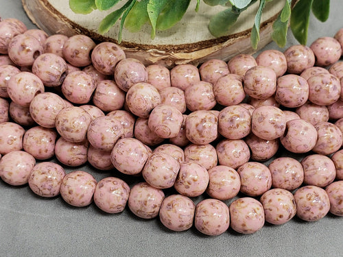 Soft Pink - Large Hole Aged Picasso Czech Druks - 8mm - 6" Strand/20pcs